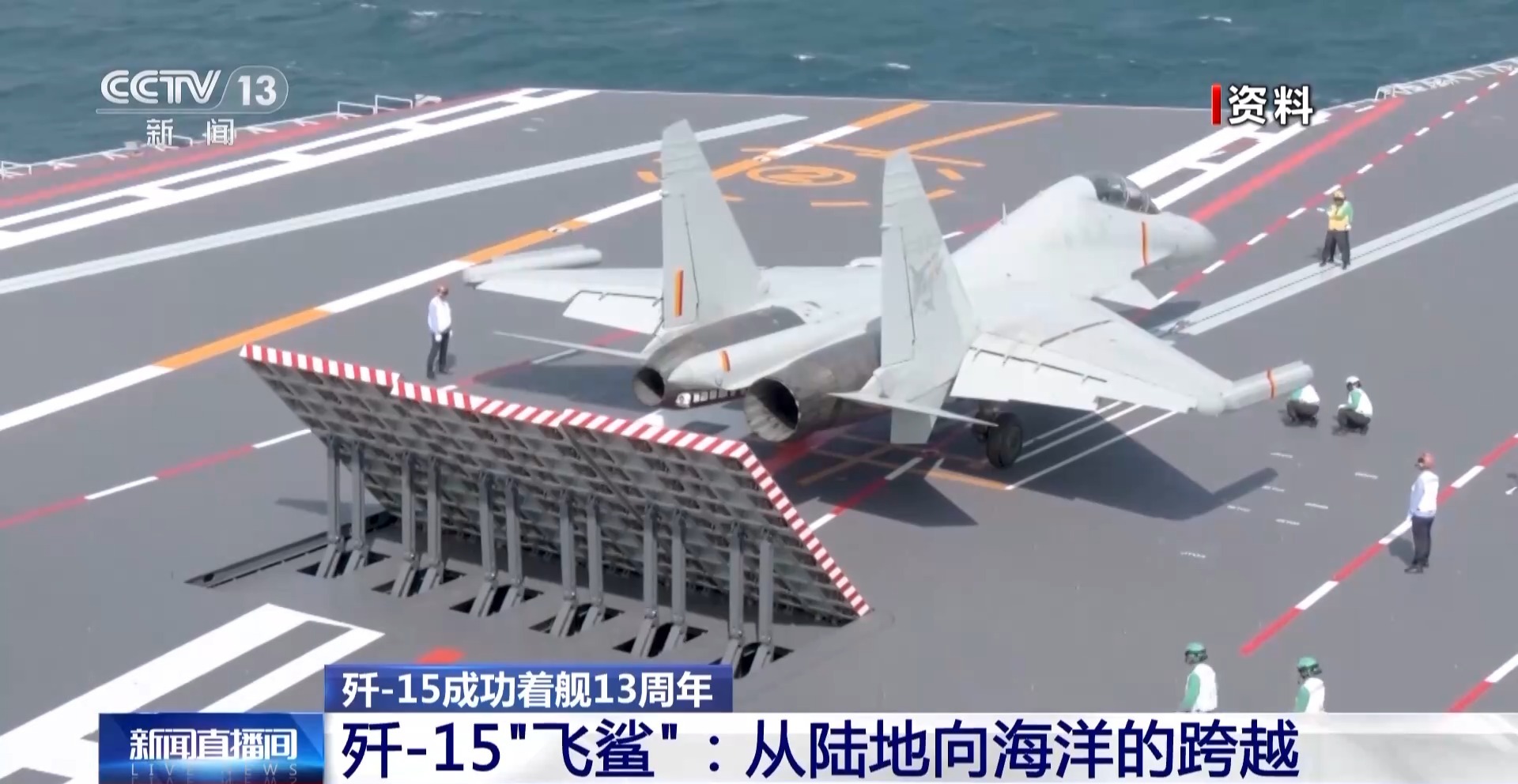 总台军事观察员 魏东旭:13年前戴明盟驾驶歼-15“飞鲨”在航母辽宁舰上展示了中国航母的力量和相关的科技水平。现在我们再看,中国航母的舰载机的作战体系全面地发展、全面地进步,全天候的作战能力更上一层楼。